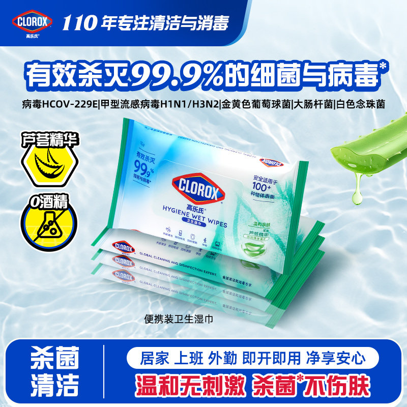 高乐氏99.9%消毒杀菌便携小包湿巾手纸家用清洁防护灭杀细菌病毒