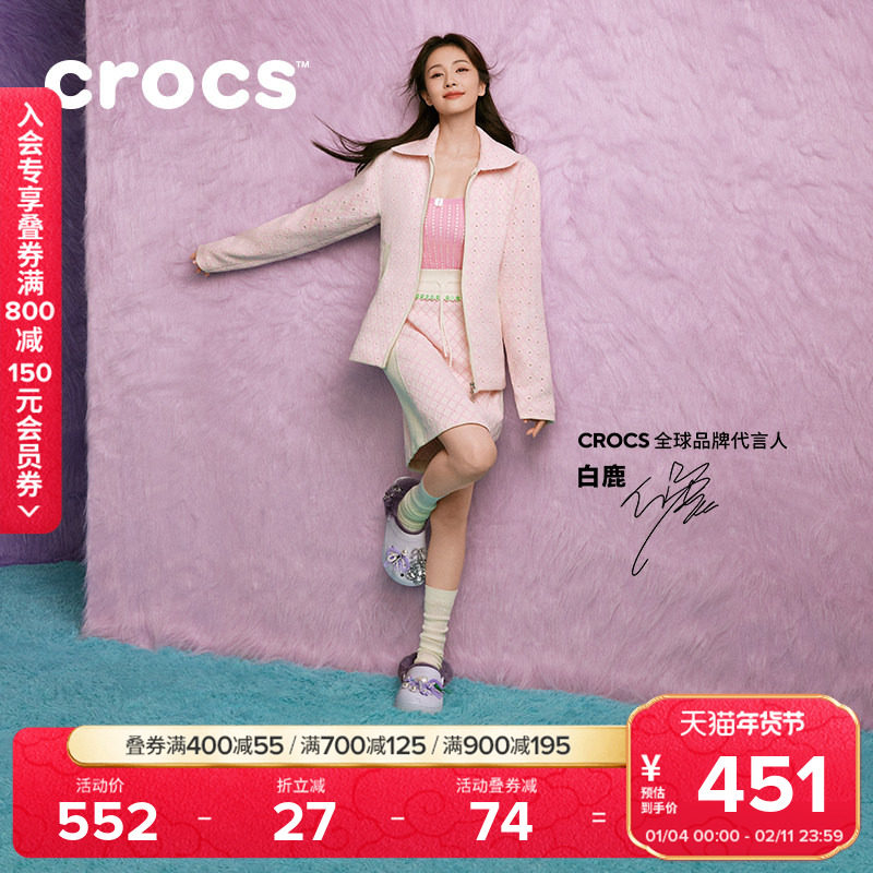 白鹿同款Crocs卡骆驰经典云朵暖绒洞洞鞋女鞋厚底毛毛鞋|212854