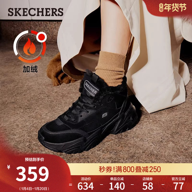 斯凯奇秋冬季女鞋加绒保暖中高帮老爹鞋机甲运动鞋厚底耐磨雪地靴
