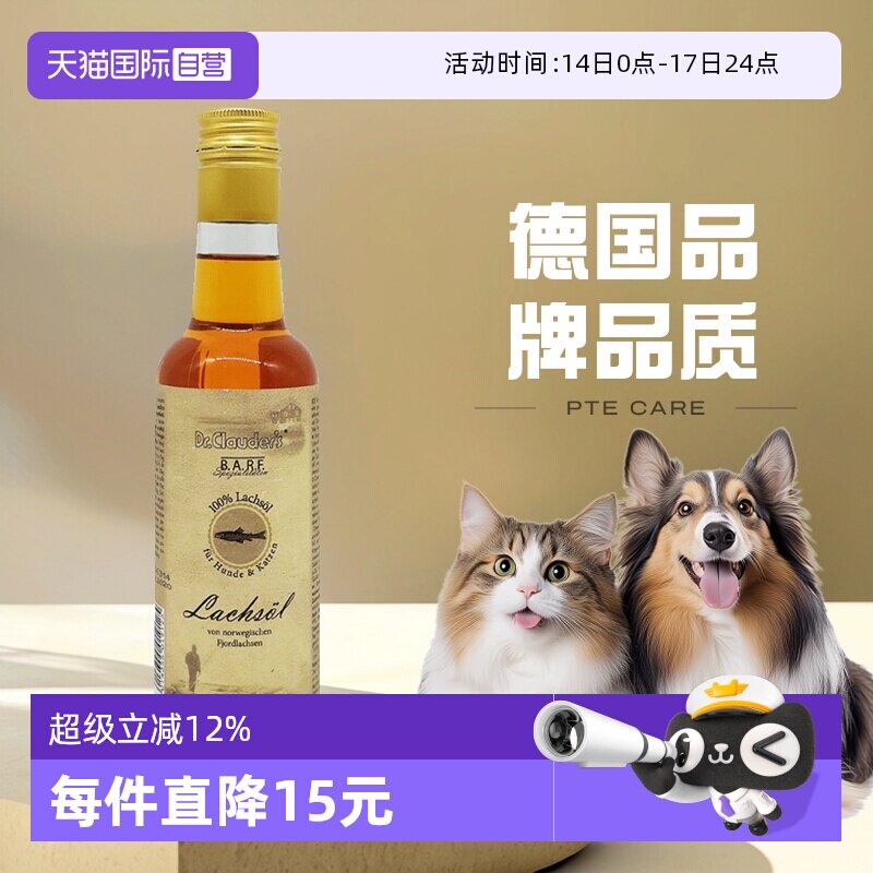 【自营】克劳德医生宠物深海三文鱼油猫狗美毛护肤防掉毛250ml