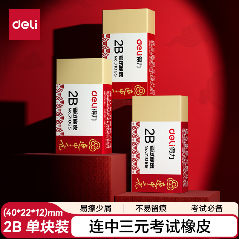 得力(deli)【金榜题名】连中三元系列学生中考高考考试橡皮擦 黄色 单个装 71065