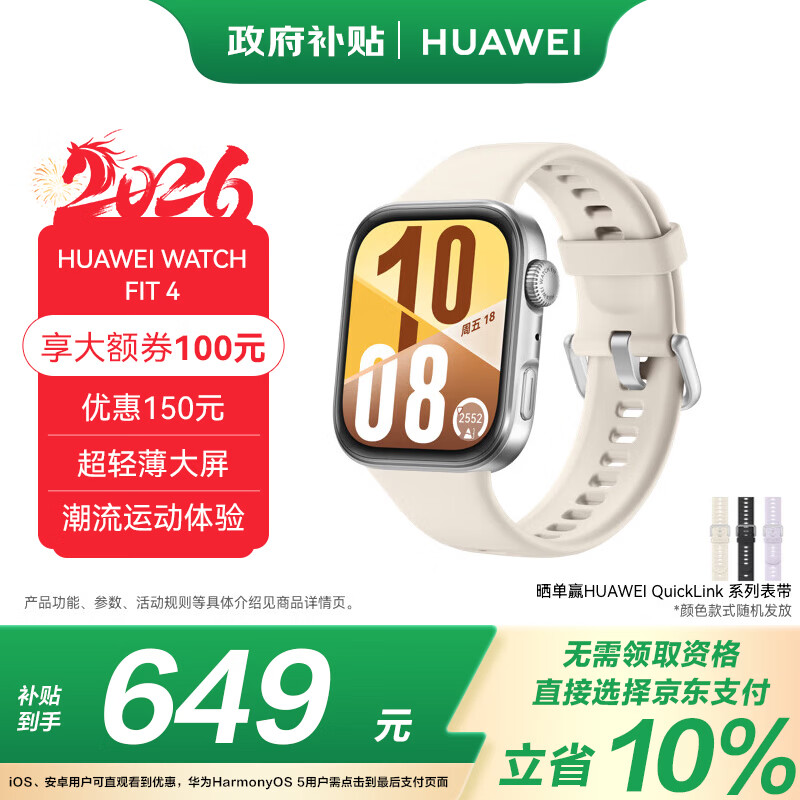 华为HUAWEI WATCH FIT 4 悦动白氟橡胶表带 华为运动智能手表超轻薄大屏潮流运动蓝牙通话睡眠监测fit4