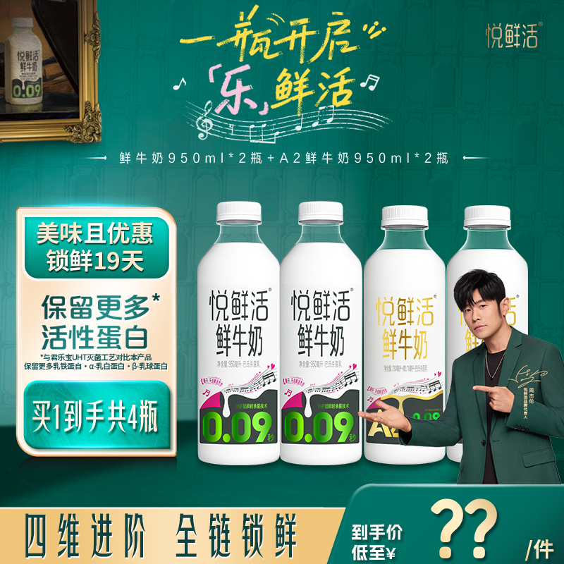 【直降】悦鲜活950ml*2+A2型950ml*2 营养低温鲜奶 日期新鲜