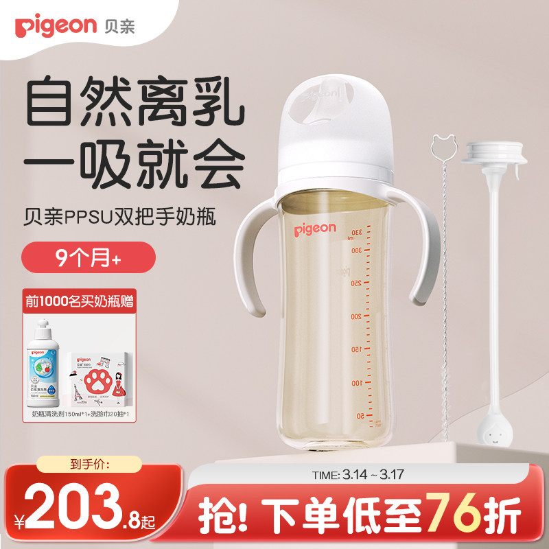 贝亲PPSU双把手重力球吸管大奶瓶婴儿宝宝防胀气防呛离乳奶瓶奶嘴