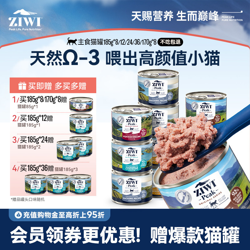 【ziwi旗舰店】滋益巅峰猫罐头185g*8/12营养主食罐猫咪成幼猫