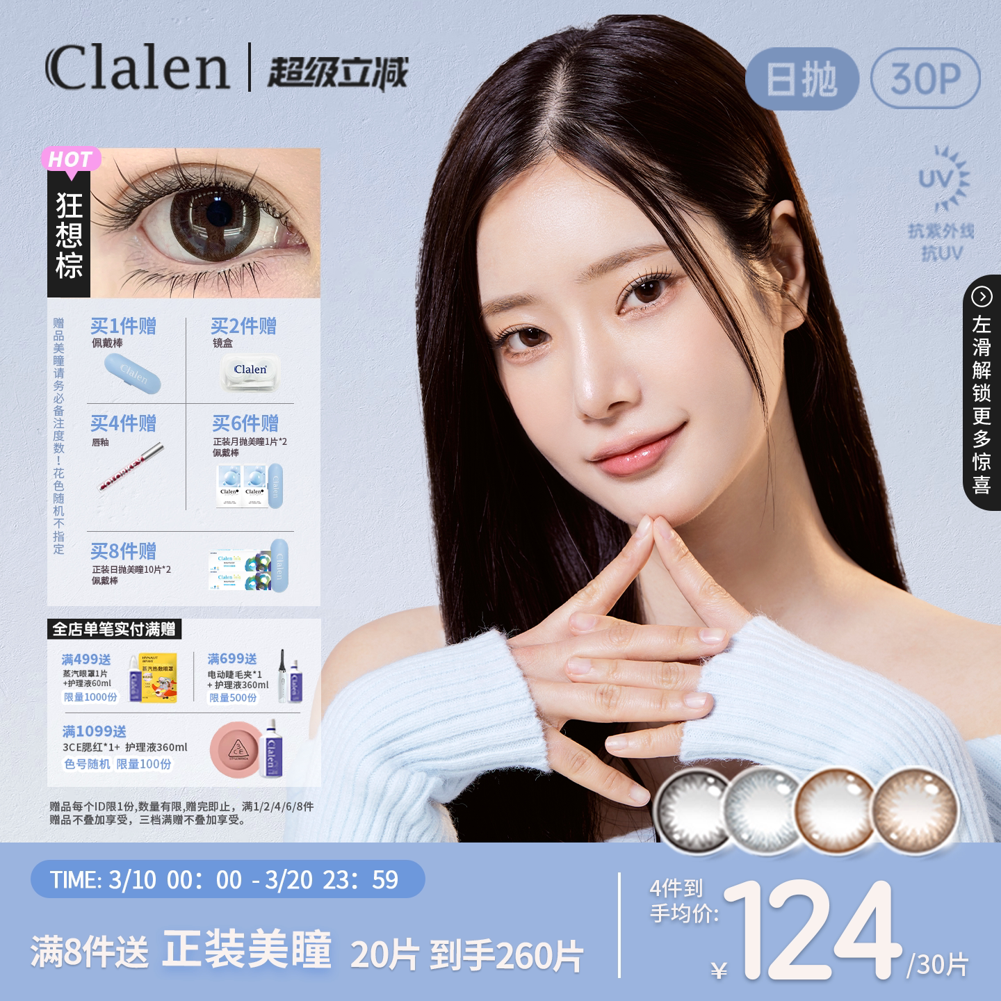 Clalen可俪兰韩国三明治棕色美瞳日抛女iris30片大小直径隐形眼镜