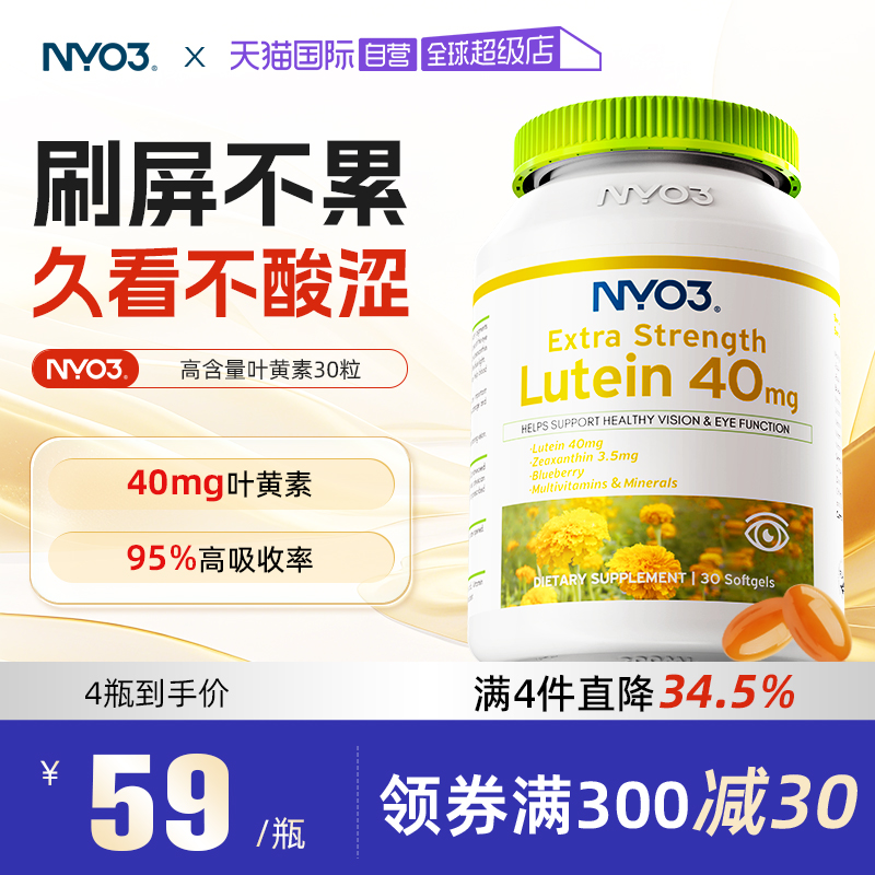 【自营】NYO3高含量40mg蓝莓叶黄素专利护眼片胶囊成人通用30粒