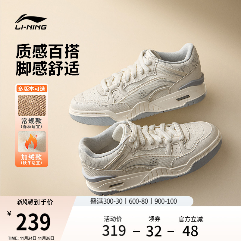 李宁月白2 MID休闲鞋男鞋秋冬新款加绒复古黑色板鞋中高帮运动鞋