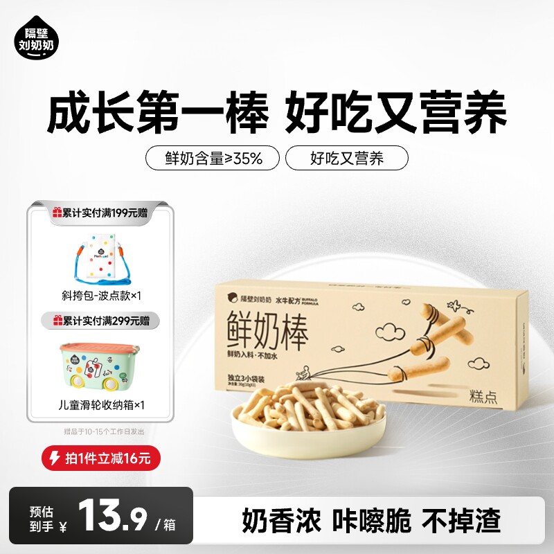 隔壁刘奶奶水牛配方鲜奶棒10g*3包高钙高蛋白宝宝营养零食