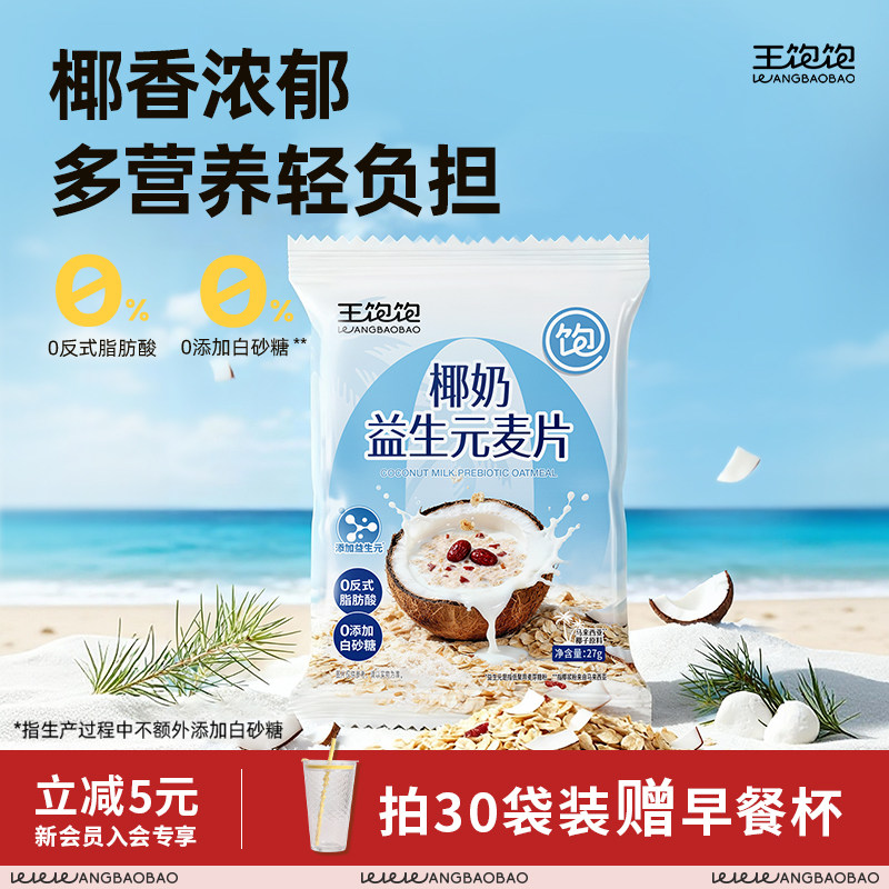 王饱饱椰奶益生元麦片独立小包装营养早餐代餐牛奶牛乳冲泡燕麦片