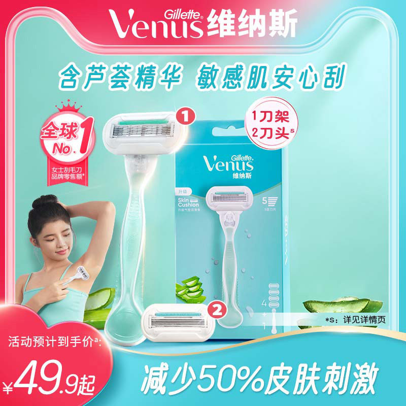 吉列venus维纳斯芦荟脱毛刀敏感肌女士手动刮毛刀腋毛脱毛刀便捷