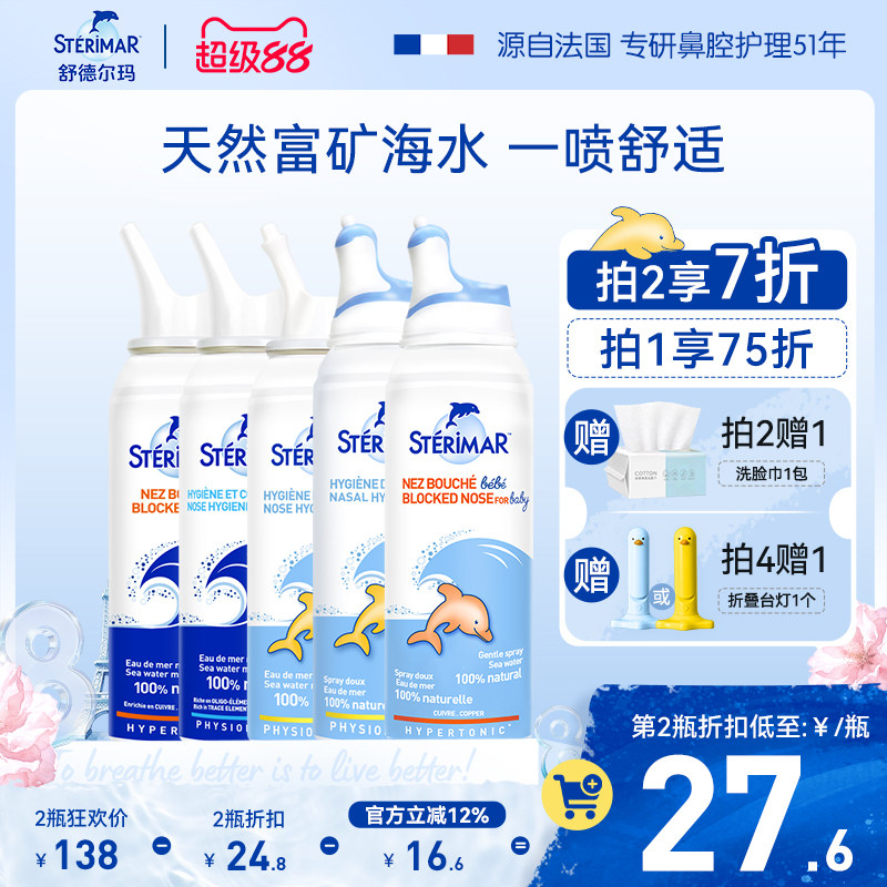舒德尔玛Sterimar小海豚儿童成人鼻腔鼻炎喷雾洗鼻器清洁便携50ml
