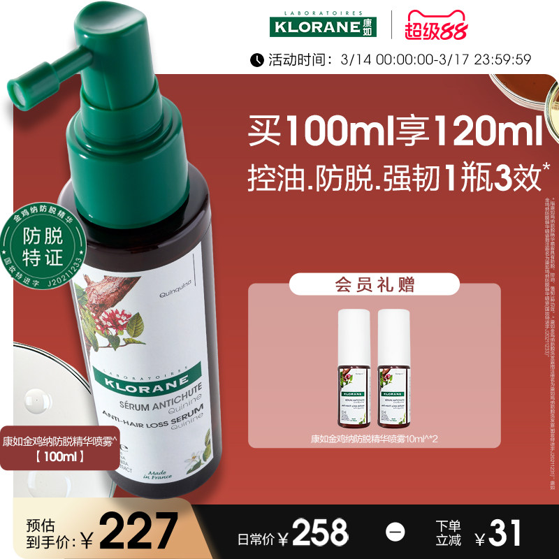 【樊振东同款】klorane康如金鸡纳防脱发头皮精华喷雾控油防断发