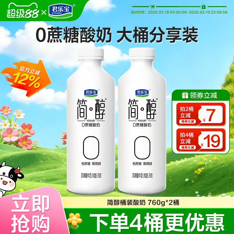 君乐宝简醇0蔗糖酸奶大桶760g量贩装风味酸牛奶简醇低温酸奶