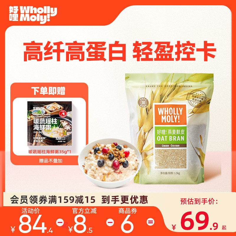 好哩高纤燕麦麸皮清道麸高蛋白质无添蔗糖官方正品健身早餐麦片