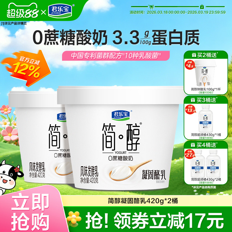【新品上市】君乐宝简醇0蔗糖酸奶凝酪乳风味发酵乳420g*2桶