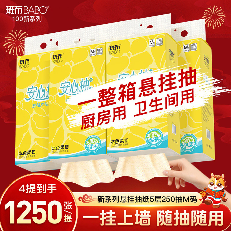 斑布悬挂式抽纸250抽5层加厚M码餐巾纸卫生纸原生竹浆家用实惠装