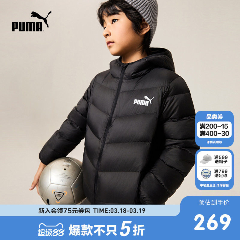 PUMA彪马童装新款儿童羽绒服男童女童轻薄羽绒拉链保暖连帽外套
