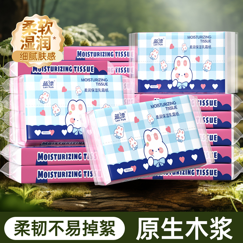 保湿纸云柔巾柔纸巾婴儿抽纸乳霜纸巾宝宝面巾纸擦鼻子蓝漂-AY