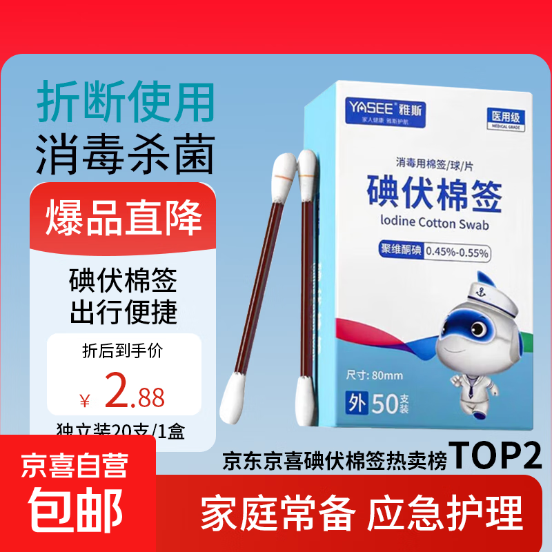 医用碘伏棉签碘伏消毒液棉棒新生婴儿肚脐清洁痘痘皮肤消毒无酒精 【医用级碘伏棉签】1盒20支