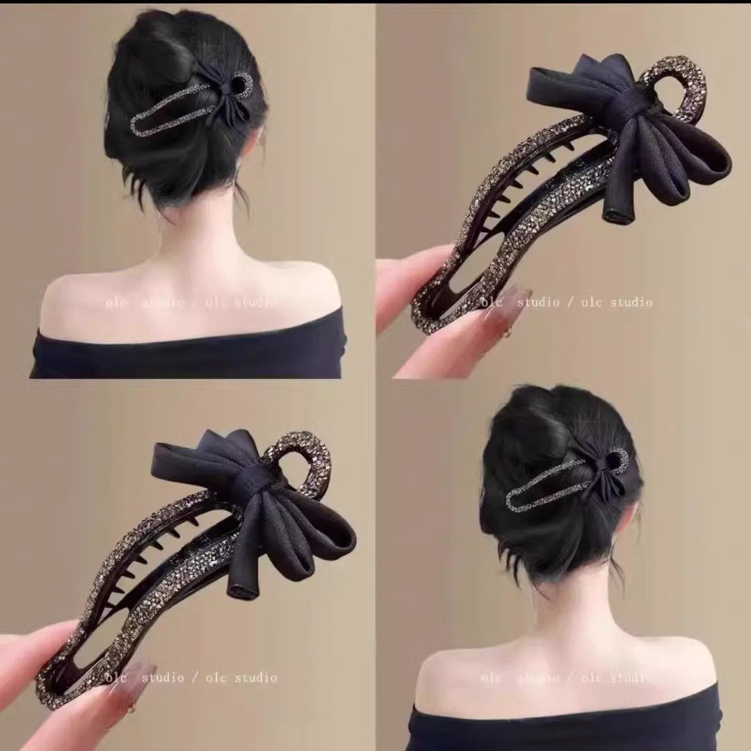 【下单立减30】气质碎钻蝴蝶结发卡抓夹女后脑勺懒人盘发神器鸭PX