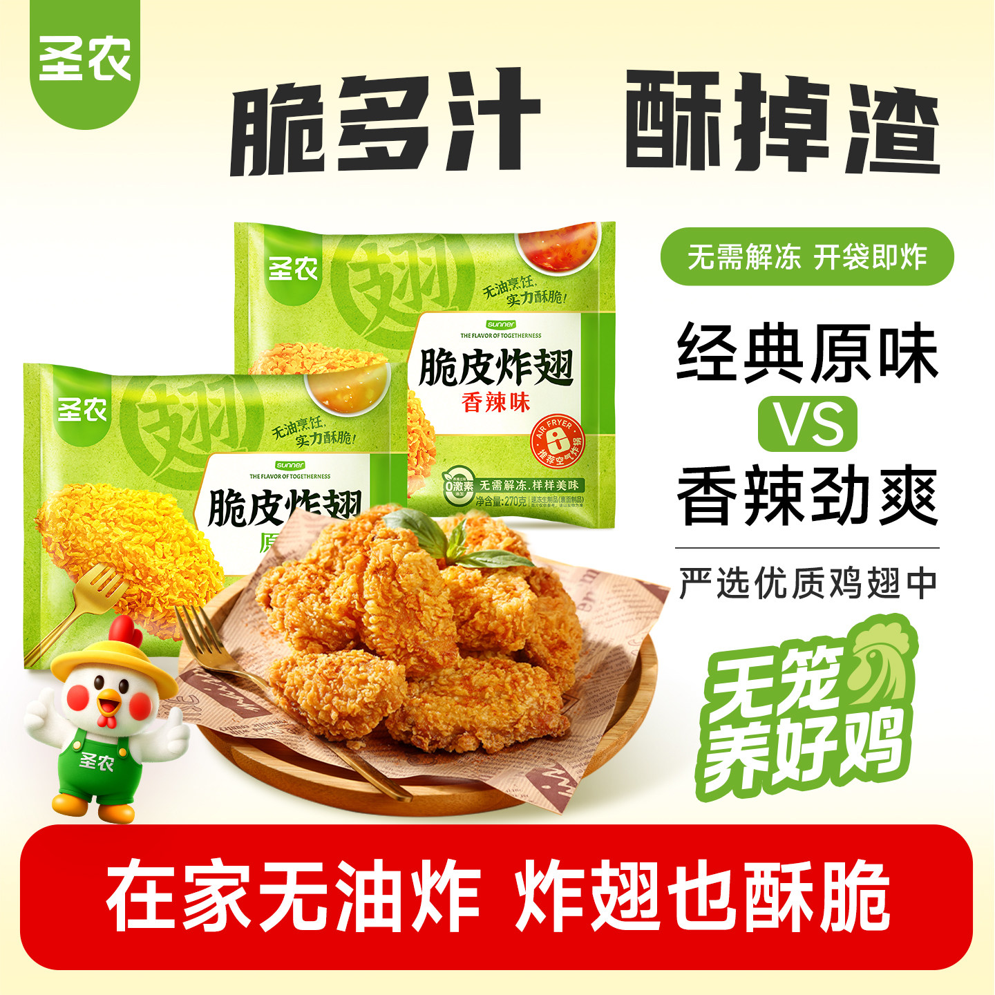 【活动专享】圣农脆皮炸翅270g*3包原味香辣裹粉烤鸡翅中半成品