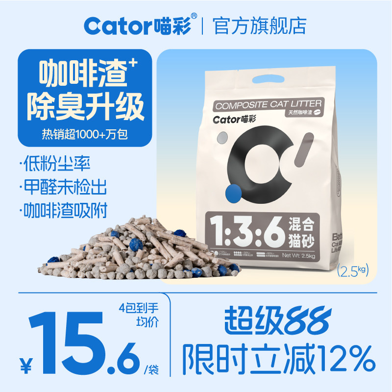 Cator喵彩1:3:6咖啡渣除臭混合猫砂无尘膨润土豆腐物理除臭2.5kg