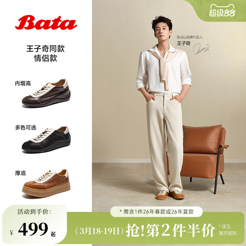 王子奇同款Bata羊皮书德训鞋26春商场软薄底复古休闲板鞋ALI45AM6