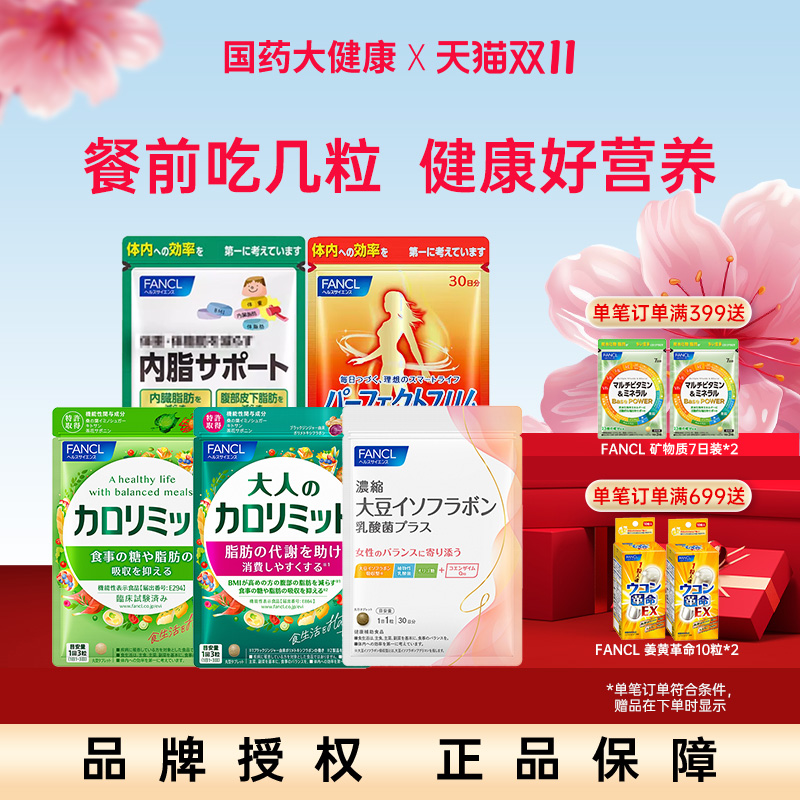 FANCL成人热控片抗糖阻糖油碳水吸收日本芳珂进口黑姜提取90粒