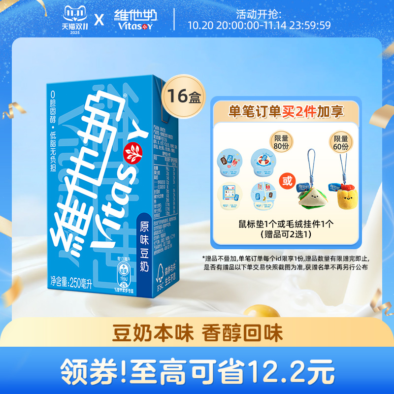 vitasoy维他奶原味豆奶植物蛋白饮料奶饮品250ml*16盒整箱早餐奶