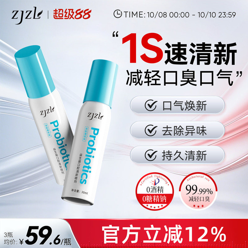 ZJZL益生菌口腔清新喷雾喷剂抑除口臭持菌久留香口腔异味男女通用