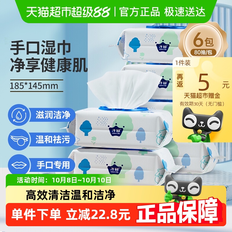 子初婴儿湿巾新生儿童湿纸巾手口专用清洁湿巾80抽6包实惠装