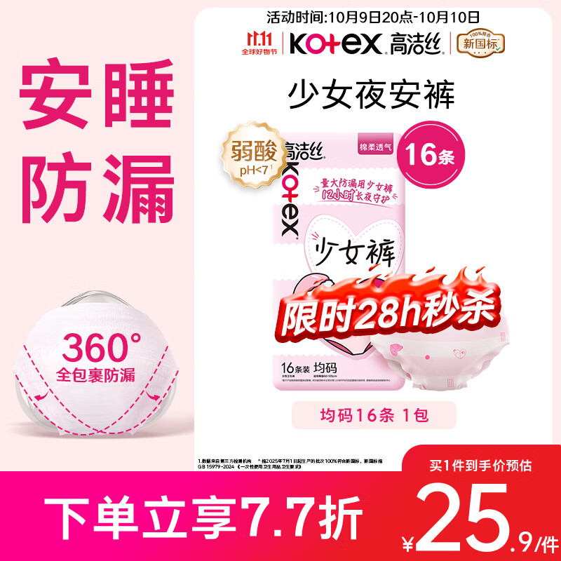 高洁丝【超薄安睡】少女裤夜安裤均码16条安睡裤裤型卫生巾京东自营旗舰