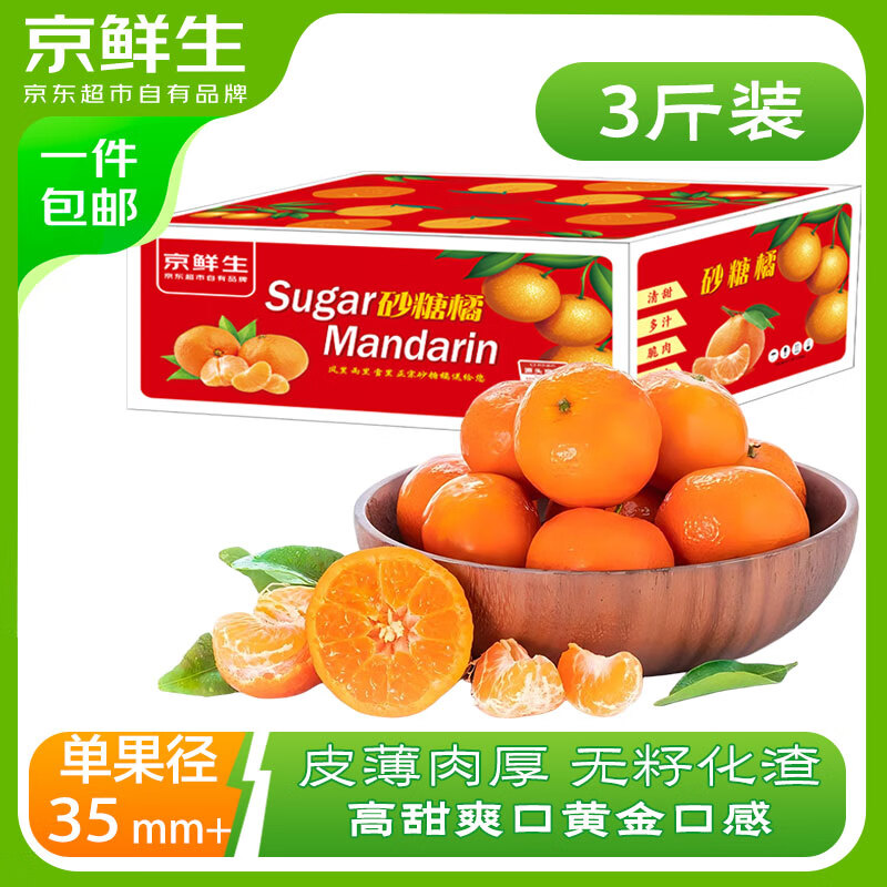 京鲜生 云南金秋砂糖橘 净重3斤 单果35-45mm 水果礼盒 源头直发包邮