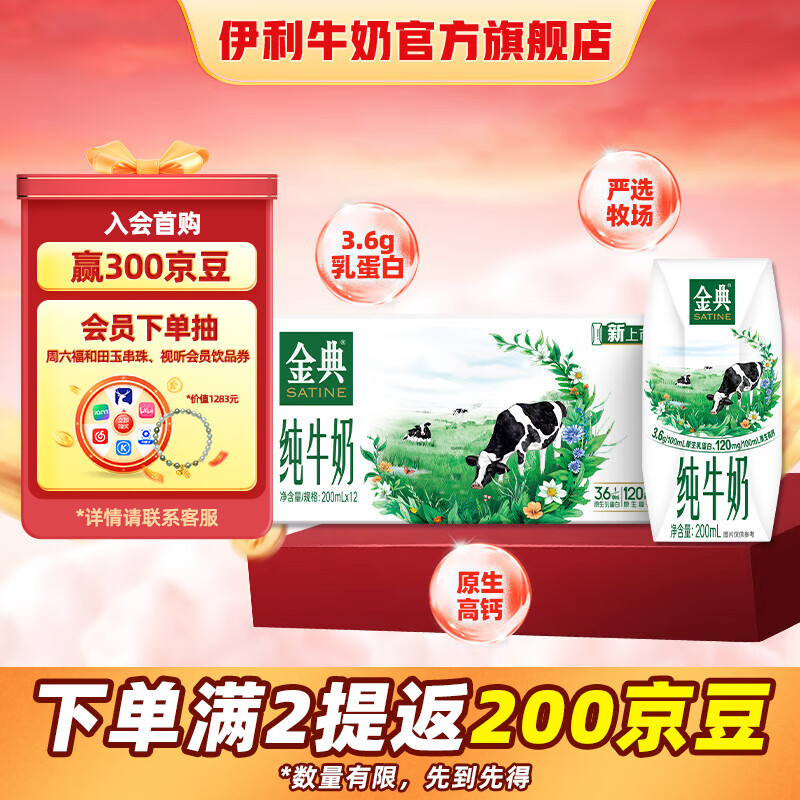 金典纯牛奶200ml*12盒/箱 严选优质牧场 精巧自饮装 8月产