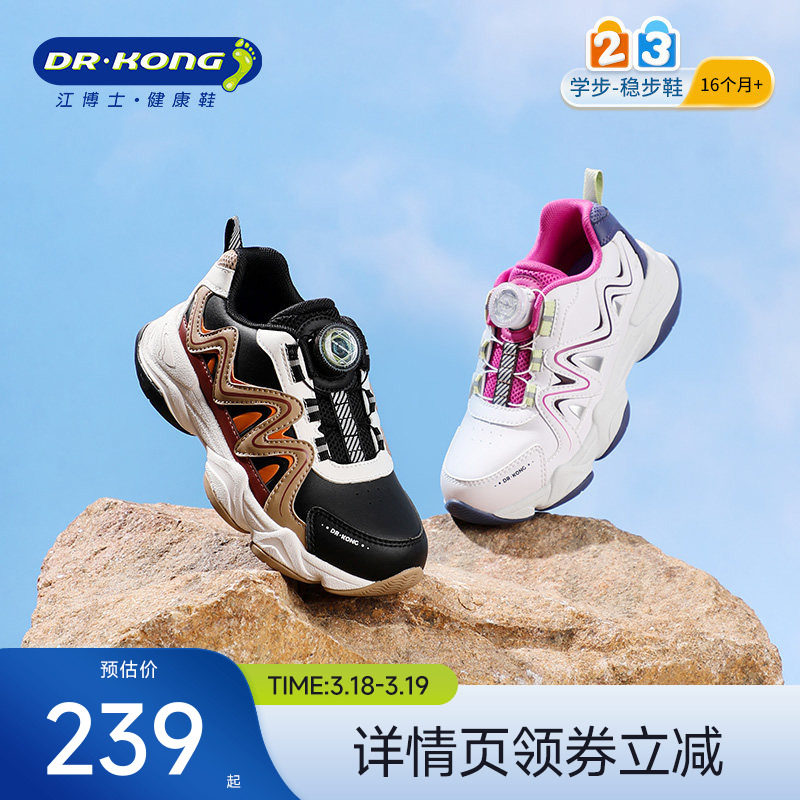江博士童鞋秋款男女缓震透气旋钮扣儿童运动鞋户外