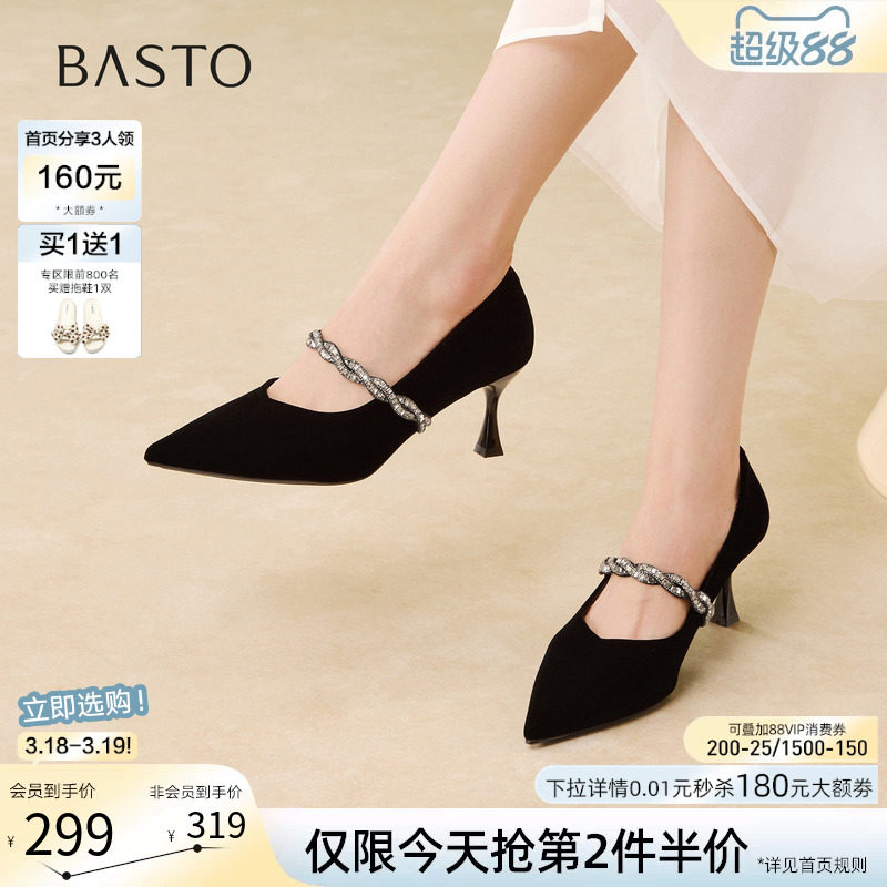 百思图2026春季商场新款优雅玛丽珍鞋细跟高跟鞋女单鞋W9520AQ6