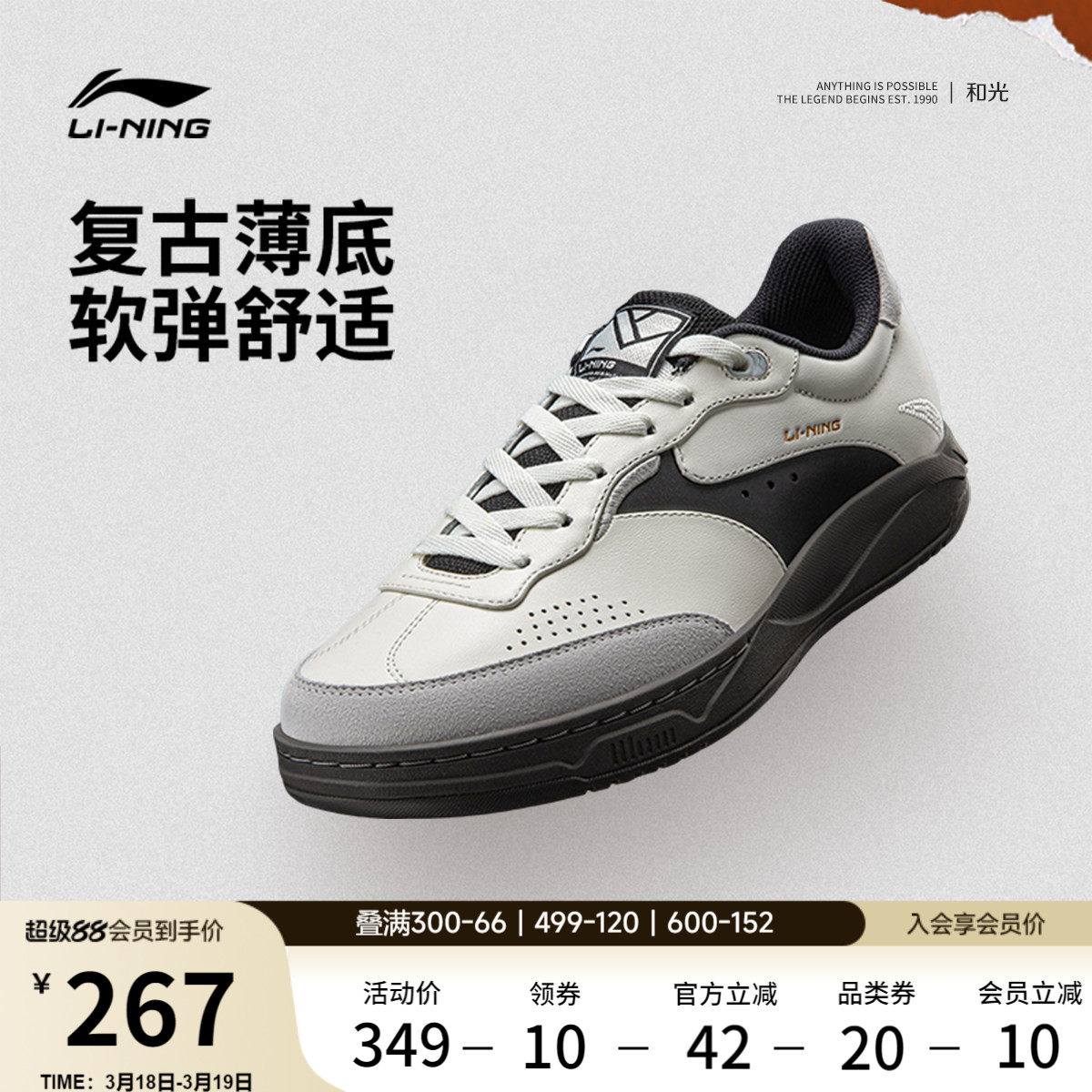 李宁和光 | 休闲鞋男鞋春季德训鞋板鞋情侣同款薄底鞋新年运动鞋