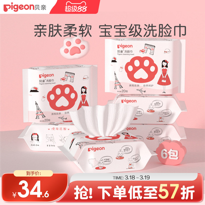 猫爪卷筒式洗脸巾宝宝专用加厚一次性面巾80抽套装贝亲官方旗舰店