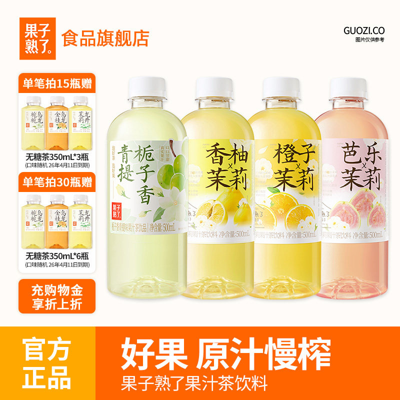 果子熟了梅子乌龙柚子夏黑葡萄芭乐茉莉整箱特价500ml果汁茶饮料