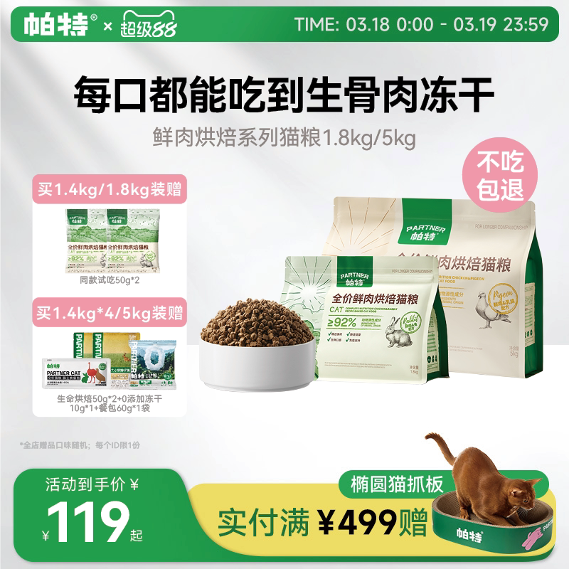 帕特烘焙猫粮鲜肉鸡肉兔肉乳鸽配方全价添加811主食冻干粉猫主粮