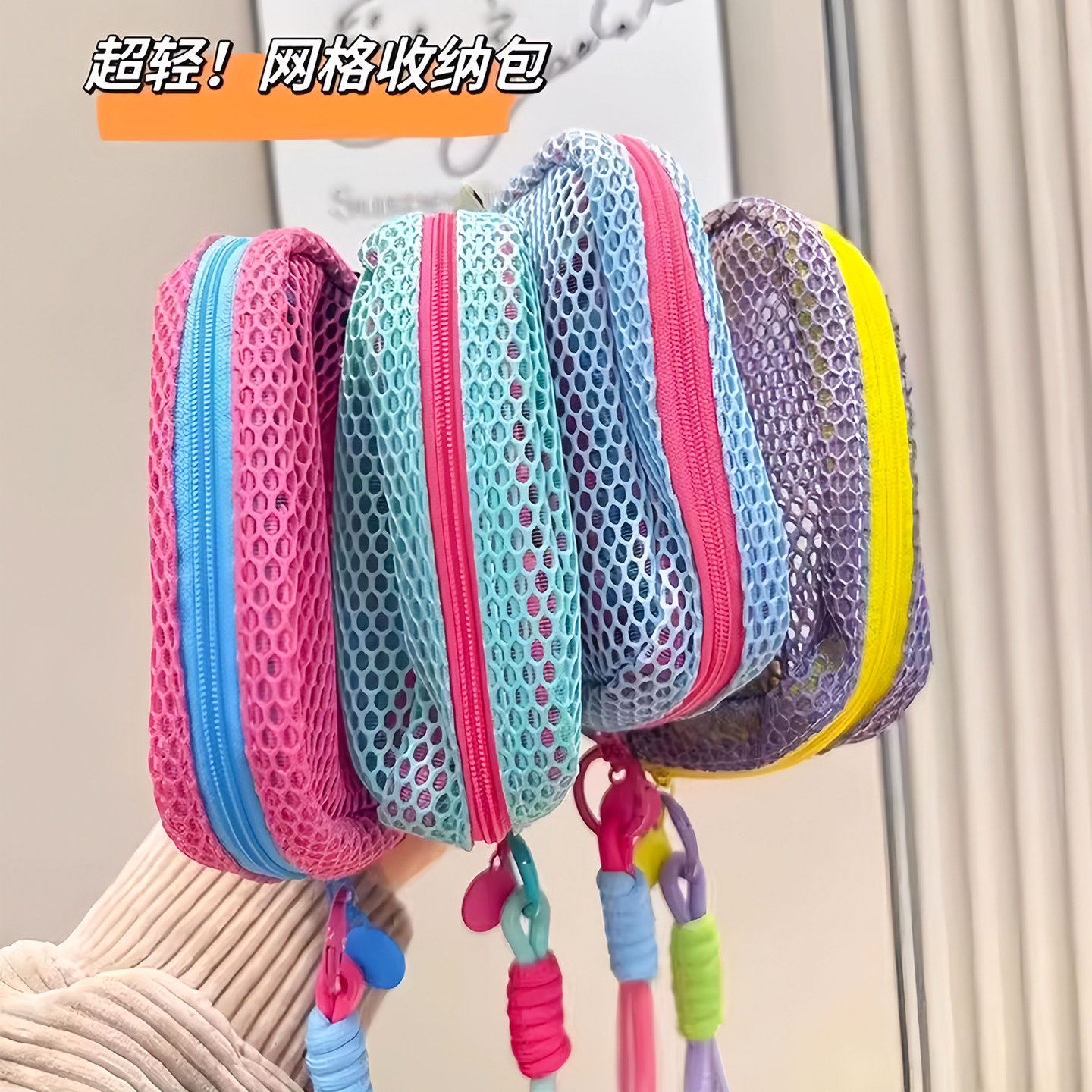 多彩网包多巴胺网纱化妆包便携式随身迷你小包化妆品收纳袋洗漱包