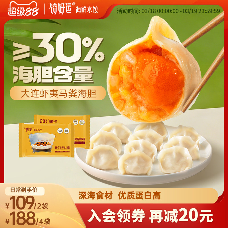 饺好运海胆水饺海鲜水饺速冻蟹黄鲅鱼饺子速食饺子手工虾饺蛋白