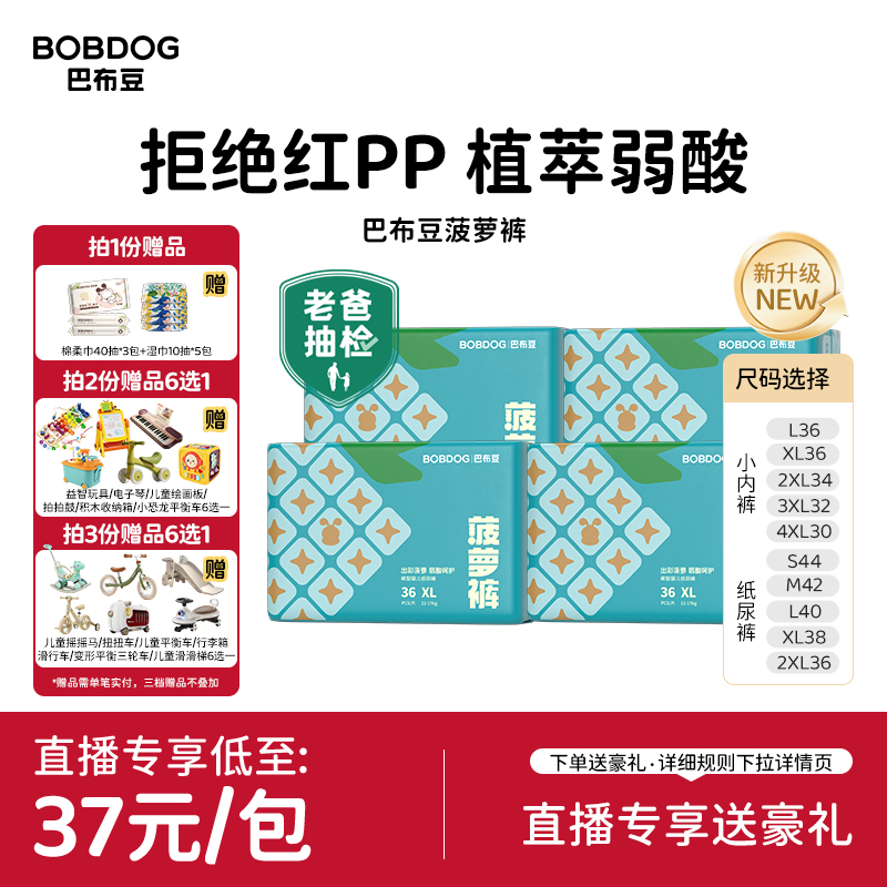【直播专享】巴布豆菠萝拉拉裤纸尿裤弱酸亲肤透气干爽尿不湿4包