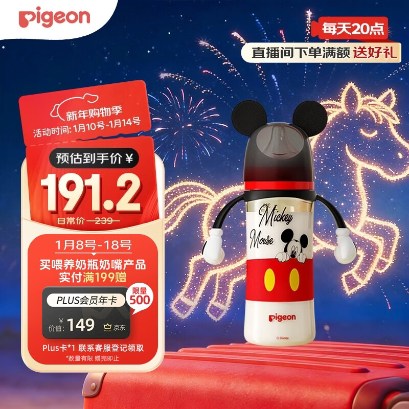贝亲(Pigeon)PPSU迪士尼双把手奶瓶330ml L号奶嘴 米奇躲猫猫 6月+ AA269