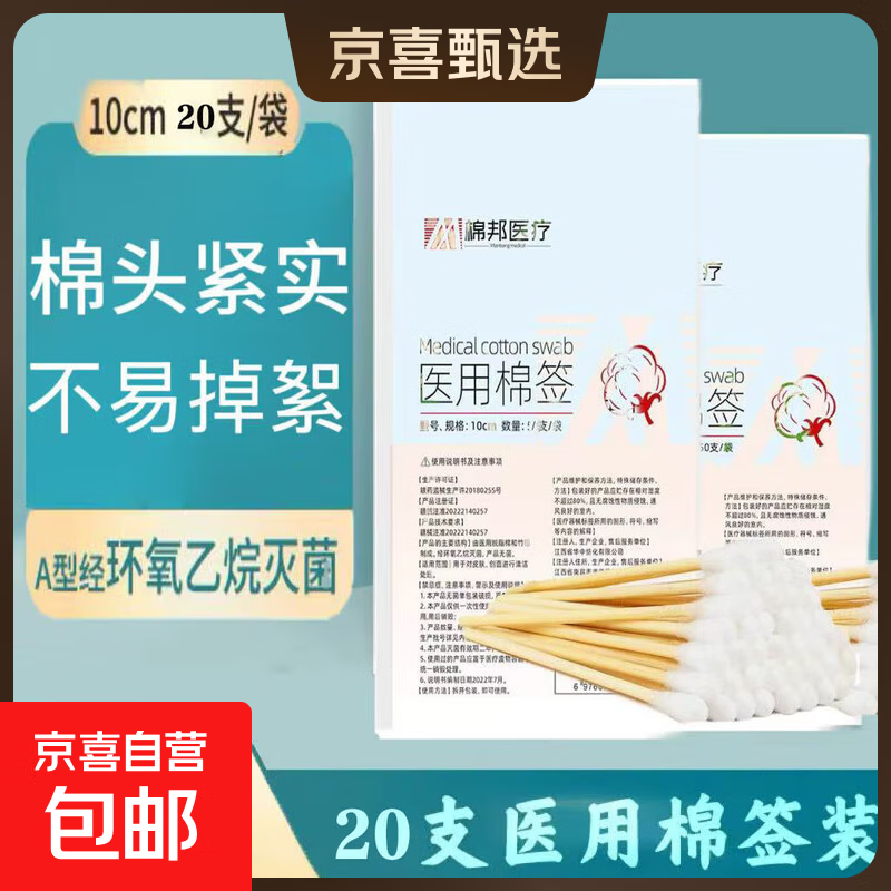 【药房同款】医用棉签一次性使用无菌棉签棉棒灭菌已消毒棉棒10cm 医用棉签10cn-20支/包【一包】