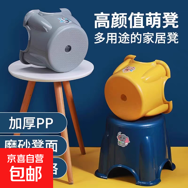 小凳子加厚家用小板凳客厅方凳可叠放茶几凳浴室防滑儿童塑料矮凳 小号【19.5*15*22.2cm】随机颜色