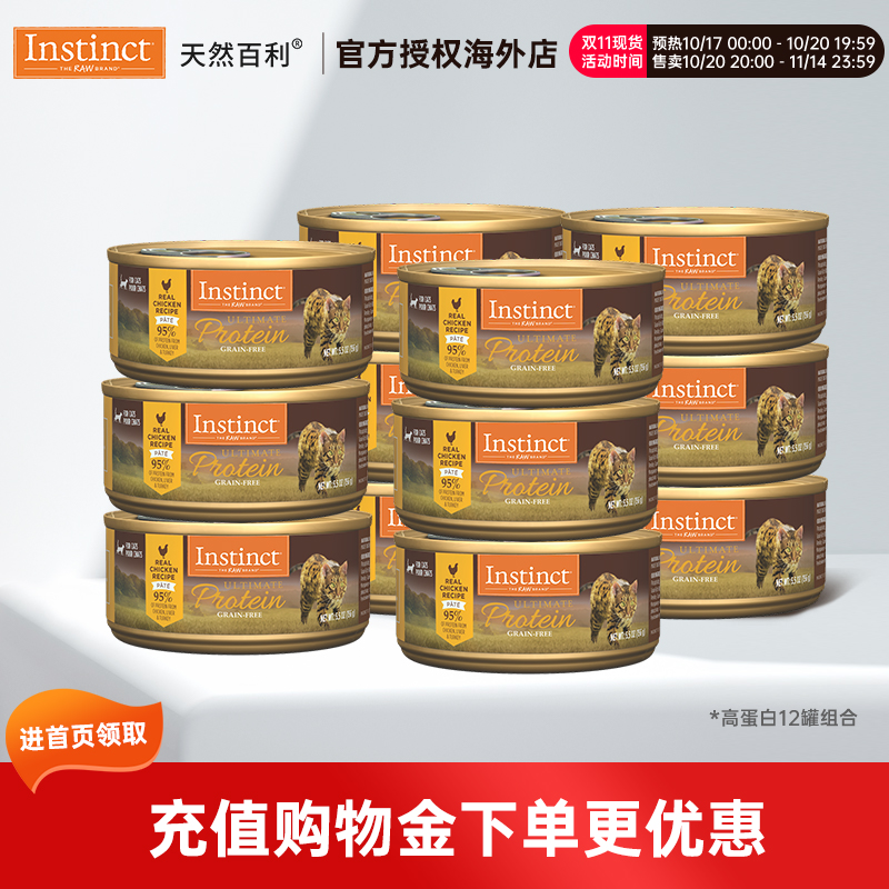 【12罐】Instinct天然百利猫罐头高蛋白罐头无谷鸡肉猫咪进口罐头