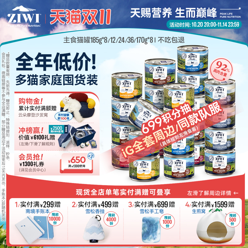 【ziwi旗舰店】滋益巅峰猫罐头185g*8/12营养主食罐猫咪成幼猫