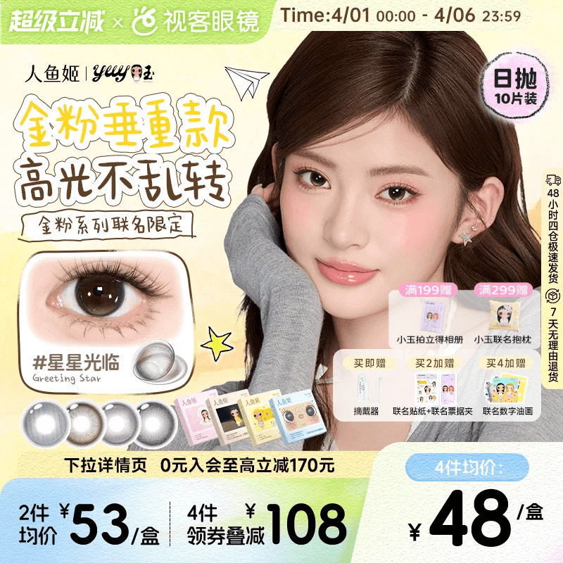 yuy小玉联名!人鱼姬金粉大师日抛美瞳10片大直径黑金胶片星星光临